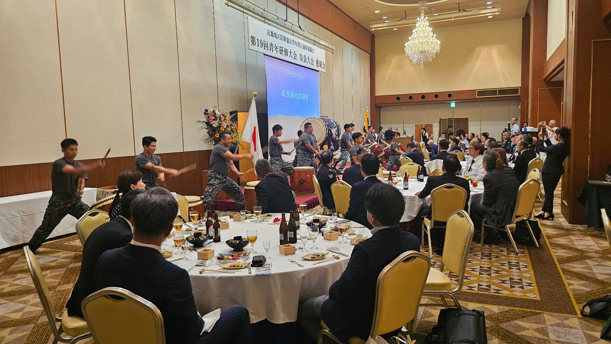また懇親会では奈良基地太鼓部による迫力満点の太鼓演武を間近で鑑賞することができ、大変すばらしい大会であったと思います。